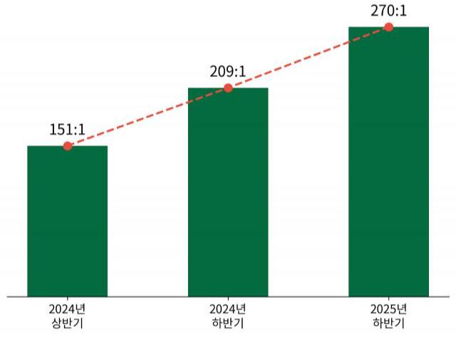 실제로 건국대 직원 채용 경쟁률은 최근 몇 차례 채용에서 뚜렷한 상승세를 보였다. 2024년 상반기 채용은 151대 1, 같은 해 하반기 채용에서는 209대 1의 경쟁률을 기록했다. 또 2025년 하반기 채용에서는 경쟁률이 270대 1까지 치솟았다. 단기간에 경쟁률이 크게 높아진 것은 건국대가 추진 중인 변화와 도전에 공감하는 지원자들이 늘어난 결과로 풀이된다.