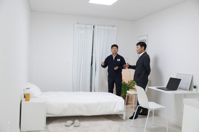 현장을 찾은 진현환 국토교통부 제1차관은 노후 학교시설 리모델링 현장이나 과밀학급 지역 등에 설치되는 임시교실 모듈의 제작 공정과 품질관리 절차를 살펴보고, 주택, 이동식 병원 등의 견본세대를 참관했다.