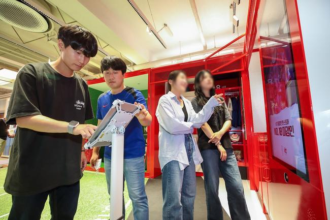 내부에는 AI로 학습된 이강인 선수가 고객의 이름을 호명하며 인사를 전하는 `웰컴 메시지 키오스크`, 이강인 선수의 `일러스트 벽화`, 유니폼 형태로 제작된 `에어볼 이벤트존`, `축구 국가대표팀 전시` 등 기존 통신 매장에서 볼 수 없었던 색다른 볼거리가 마련돼 있다.