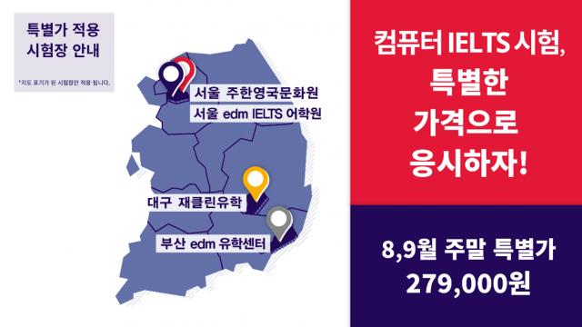 주한영국문화원이 오는 9월 30일까지 서울, 대구, 부산의 지정 시험장에서 주말에 열리는 IELTS 컴퓨터 시험을 특별가인 27만9000원에 제공하는 한정 이벤트를 진행한다