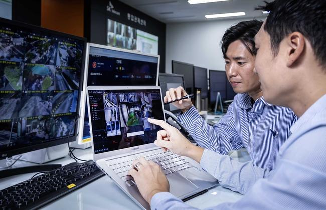 ‘AI 영상 관제’는 AI CCTV, 드론, 바디캠 등의 장비로 촬영한 영상을 AI로 분석해 보안 위협과 사고 상황을 감지하는 솔루션이다. CCTV에 첨단 AI 기술을 적용해 외부인의 침입, 작업자의 낙상, 공장 화재 등의 사고를 즉시 파악해 관리자에게 전달한다. 이를 통해 초동 조치를 위한 골든 타임을 확보할 수 있게 된다. 서버에 전달되는 영상을 AI로 분석하기 때문에 기존 CCTV를 교체하지 않아도 솔루션을 이용할 수 있어 비용 절감이 가능하다.