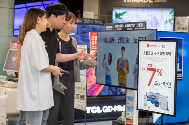 KT(대표이사 김영섭)가 롯데하이마트와 손잡고 소상공인 고객들을 위한 특별 가전 할인 혜택을 제공한다고 14일 발표했다.