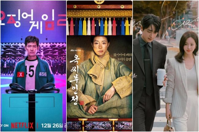 사진 왼쪽으로부터 오징어 게임 시즌2, 옥씨부인전, 나의 완벽한 비서 포스터