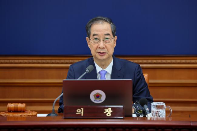 한덕수 대통령 권한대행 국무총리가 29일 세종대로 정부서울청사에서 열린 국무회의를 주재, 모두발언을 하고 있다.
