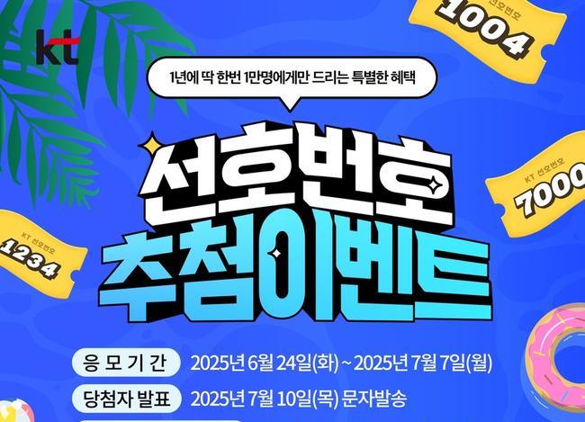 KT(대표이사 김영섭)가 통신 3사 중 올해 처음으로 `선호번호 추첨 이벤트`를 오는 7월 7일까지 진행한다고 24일 밝혔다.