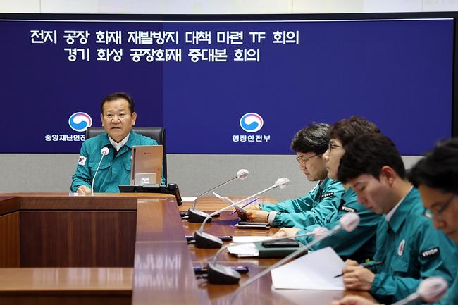 행정안전부(장관 이상민)는 7월 4일(목) 이상민 장관 주재로 범정부 합동 ‘전지 공장 화재 재발방지 TF(이하 재발방지 TF)’ 첫 회의를 개최했다.