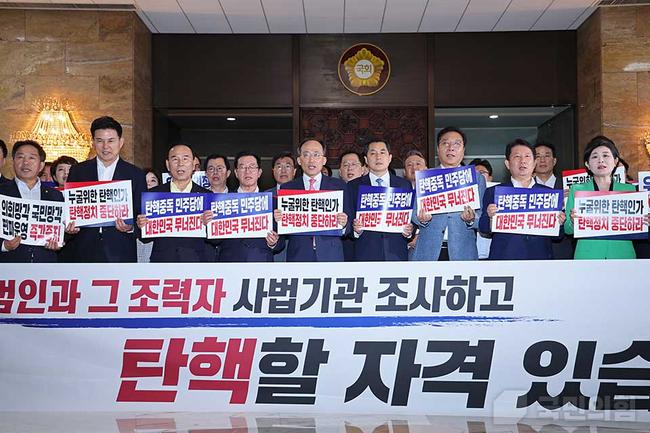 7월 3일 오후, 국민의힘 추경호 원내대표를 비롯한 소속 의원들은 서울 여의도 국회 본회의장 앞에서 우원식 국회의장과 더불어민주당을 규탄하는 피켓 시위를 진행했다. 이번 시위는 민주당의 검사 탄핵소추 발의에 대한 반발로 이루어졌다.