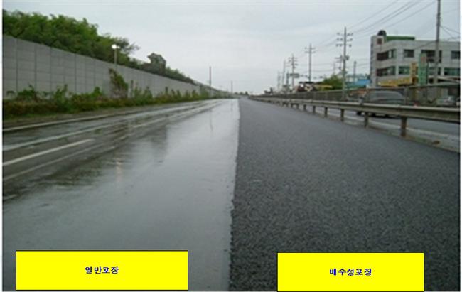 배수성·저소음 포장이란 일반 아스팔트 포장에 비해 배수 성능이 우수하여 우천 시 미끄럼 저항성과 시인성을 높여 교통사고 예방 및 타이어와 도로포장 사이 소음을 저감할 수 있는 도로포장을 말한다.