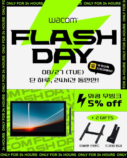 세계적인 타블렛 전문 기업 와콤(Wacom)의 한국법인 와콤코리아가 매월 마지막주 와콤 카카오톡 채널 메시지를 통해 이달의 반짝 딜 제품을 공개하고 24시간 동안 특별 할인 혜택 및 사은품을 제공하는 ‘와콤 플래시 데이(Wacom Flash Day)’ 이벤트를 진행한다.