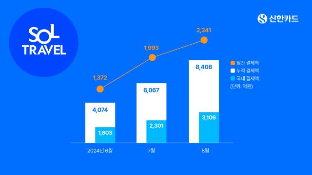 지금까지 누적 120만 매에 육박하는 발급량을 기록한 신한 SOL트래블 카드는 지난 8월 본격적인 휴가철 맞아 월간 이용액 2341억원을 기록해, 처음으로 월간 이용액 2000억원을 돌파했다. 지난 2월 출시해 고객들의 큰 호응을 얻으며 3개월 만에 월간 이용액 1000억원을 돌파한 이후에는 6월 1372억원, 7월 1993억원을 기록해 누적 8408억원을 달성하면서 누적 이용액 1조원 돌파를 눈앞에 두고 있다.