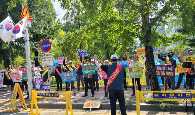지난 10일 국토부장관 임시사무실(과천청사) 앞에서의 1차 집회 모습(사진=한국가스시공협회)