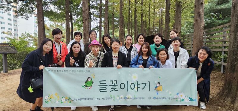 ㈔세계여성평화그룹(IWPG) 강서지부(지부장 이연정)가 다문화가정 인식개선을 위한 평화 프로젝트 의 일환으로 18일 서남환경공원에서 ‘들꽃이야기’를 진행했다.