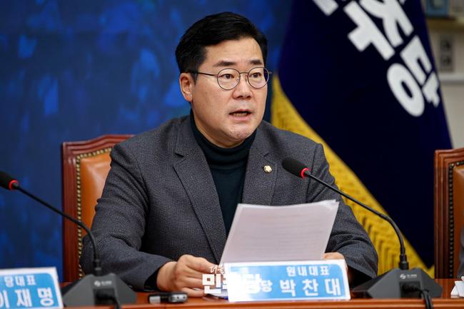 박찬대 더불어민주당 원내대표가 지난 25일 오전 서울 여의도 국회에서 열린 최고위원회의에서 발언하고 있다.