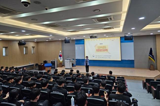 10월 10일 해양경찰교육원에서 신임경찰관 103명 대상 마약류 범죄 예방교육을 진행하고 있다.