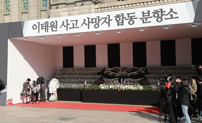 행정안전부는 1월 7일 국무회의에서 「10 · 29 이태원참사 피해자 권리보장과 진상규명 및 재발방지를 위한 특별법 시행령」 제정안을 의결했다고 발표했다. 사진은 2022년 10월 31일 서울 중구 서울광장에 마련된 이태원 사고 사망자 합동분향소 모습.