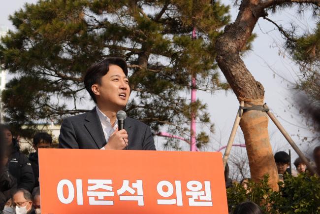 이준석 개혁신당 의원이 2일 서울 마포구 홍대 거리에서 사실상 대통령 선거 출마를 선언하며 정치 세대교체를 강하게 주장했다.