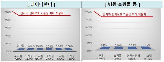 이번 조사 결과 데이터센터(6곳), 병원·쇼핑몰 등 다중이용시설(4곳) 모두 기준 대비 약 1% 수준으로, 일반 생활시설과 큰 차이가 없는 것으로 확인됐다. 측정에는 시민참여단이 참관해 투명성을 높였다.