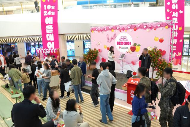 한국사과연합회가 24일 사과를 매개로 진심을 전하는 `애플데이` 행사를 서울 스타필드 코엑스몰 라이브플라자에서 성황리에 진행했다(제공=한국사과연합회)