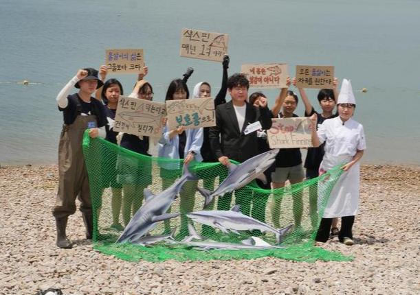 국내 서식하는 모든 상어종을 보호종으로 지정하라는 시민들의 퍼포먼스