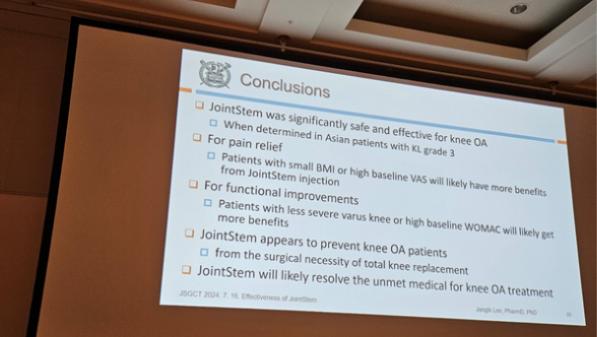 이 교수는 참석자들을 대상으로 조인트스템 1상, 2상 및 3상 임상시험 결과와 3년 추적관찰 연구결과를 소개했다.